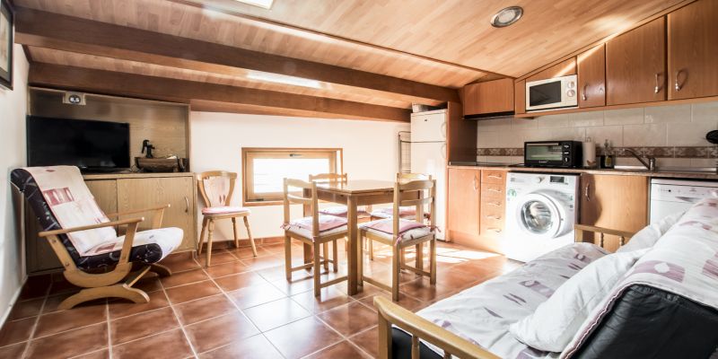 Dispone de: dos habitaciones dobles, salón de lectura y baño común. En un 2º piso cuenta con un apartamento abuhardillado con dos habitaciones individuales, cocina-comedor y baño.