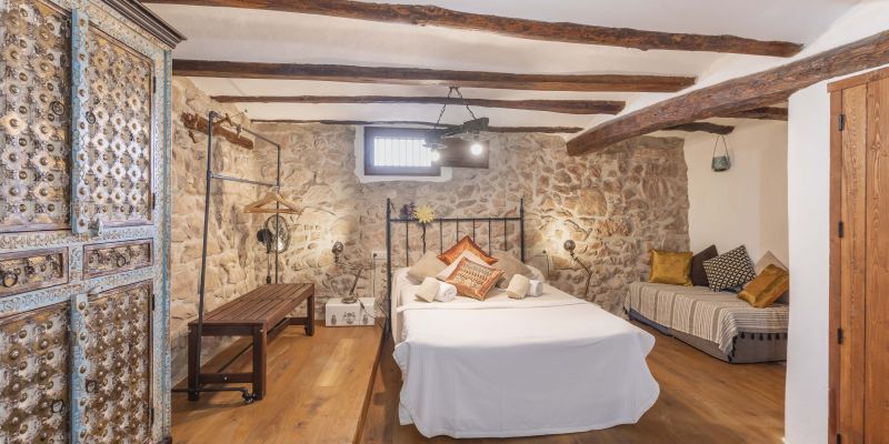 LA CASUNA DE LA UNA, es una casa rural en Olba del siglo XIX, construida únicamente con materiales nobles como piedra y madera. Esta casa tiene capacidad hasta 12 personas, 1 de sus 5 habitaciones es cuádruple, 2 triples y 2 dobles, 3 de ellas abuhardilladas con vistas al valle de Olba. Dispone de 3 baños completos. Tanto por una cuidada estética, la restauración respetuosa, la decoración, la amplitud, como por una localización inmejorable la convierten en un lugar privilegiado para disfrutar de unos días inolvidables de turismo rural en Teruel en plena naturaleza de la Comarca de Gúdar Javalambre.
