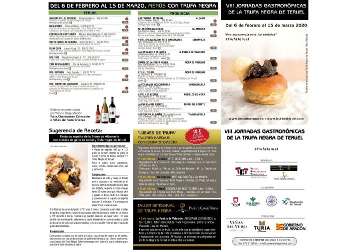Desde el jueves 6 de febrero y hasta el próximo 15 de marzo: podréis probar las mejores elaboraciones con este hongo, Tuber melanosporum, gracias a las Jornadas Gastronómicas de la Trufa, un evento que en su octava edición cuenta con la participación de medio centenar de establecimientos, entre bares y restaurantes.