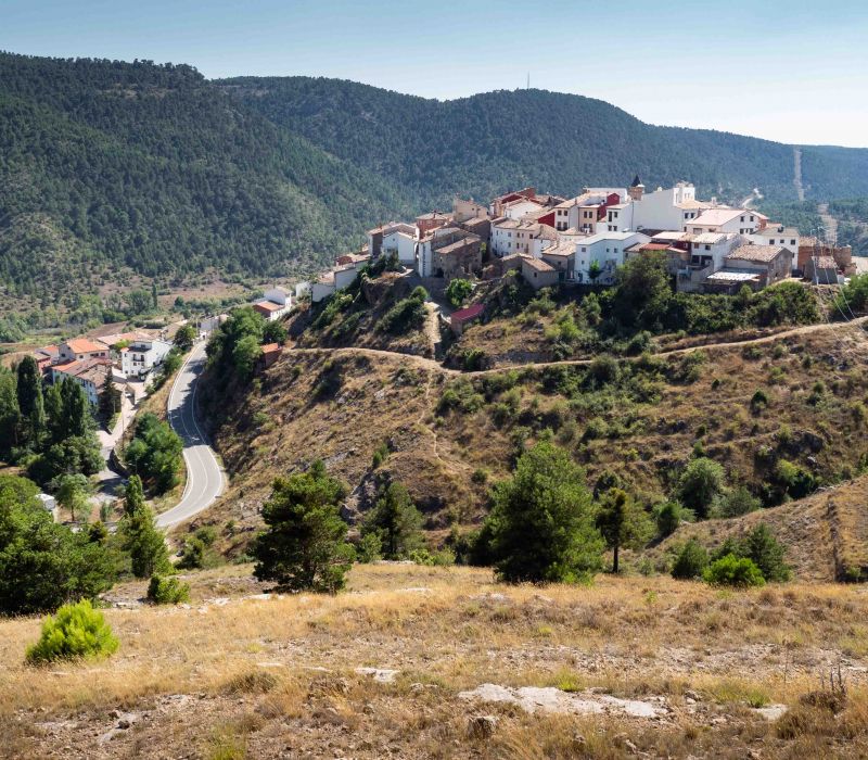Partimos del lavadero de Torrijas, situado a la entrada del pueblo (viniendo desde Arcos de las Salinas) y nos dirigimos hacia la Iglesia de San Cosme y San Damián, junto al Ayuntamiento. Desde aquí subimos hacia el Parque Municipal y nos dirigimos a la salida del pueblo por la calle Eras Altas.