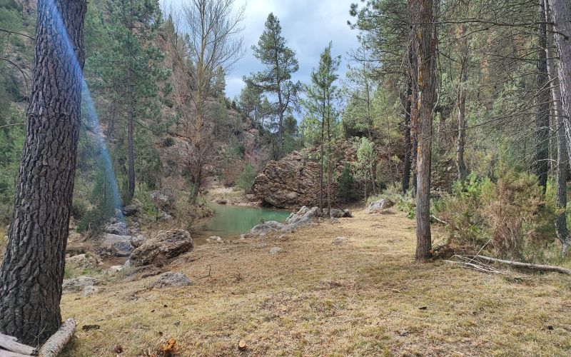Una vez lleguemos a la fuente, seguiremos el curso del río Palomarejas por el PR-VTE 126 hasta llegar al río Mijares, atravesando el barranco de la Hoz, de gran belleza. Una vez en el río, se cruza por un puente de hormigón, ascendiendo por una pista hasta la carretera que une Olba y la Venta del Aire, tomándola durante 150 metros para visitar el mirador de las Hoces del Mijares, estructura volada sobre los paredones calizos que forma el río.
