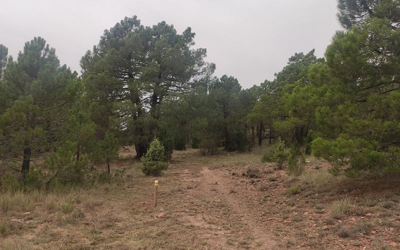El camino se inicia junto a la carretera que une Mora de Rubielos y Alcalá de la Selva, a unos 2 km del primero a mano derecha.