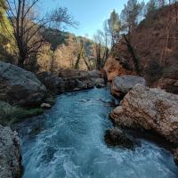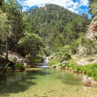Preciosa ruta circular, de 8 kilómetros de recorrido, que discurre por el cañón del Río Alcalá con sus aguas cristalinas, entre los pueblos de Cabra de Mora y Alcalá de la Selva.