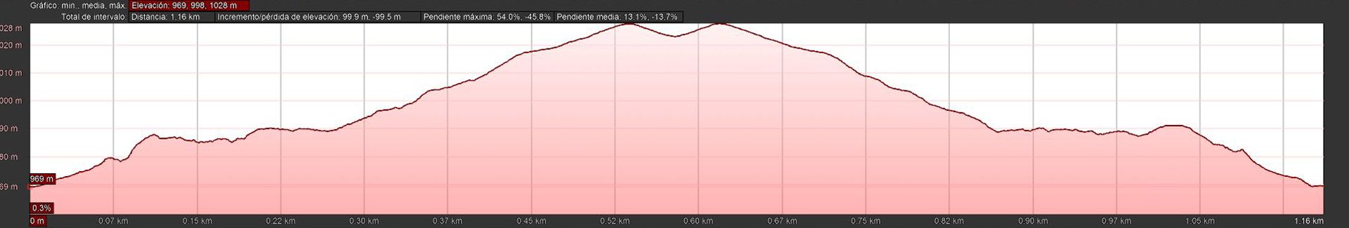 Todo el tramo es de subida hasta llegar al Peirón, lugar donde se lleva a cabo la Romería en honor a San Jorge (patrón de Aragón), el día 23 de abril de cada año.