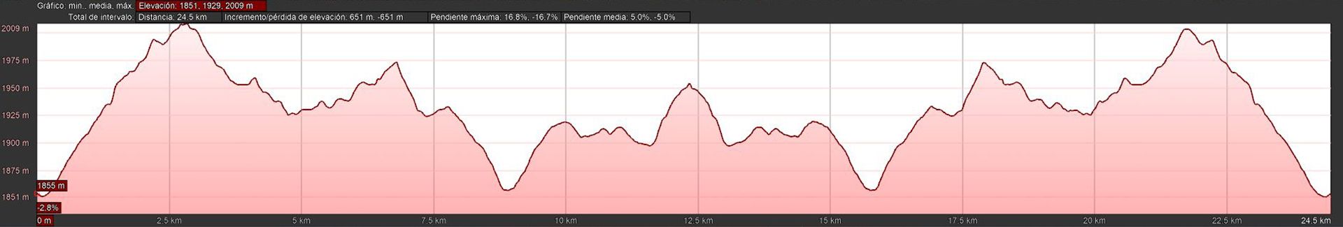 Ruta de ida y vuelta (25 kilómetros en total), con inicio en el parking de la estación de esquí de Javalambre y nos lleva hasta el Observatorio Astrofísico de Javalambre (OAJ), situado en el Pico del Buitre (1956 msnm), pasando por el Pico Javalambre (2019 msnm).