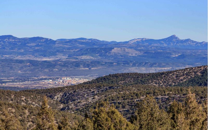 Durante la subida podremos disfrutar de unas vistas privilegiadas de la sierra de Gúdar. Desde el nido de ametralladoras se divisan perfectamente los puntos más elevados de la sierra de Javalambre.