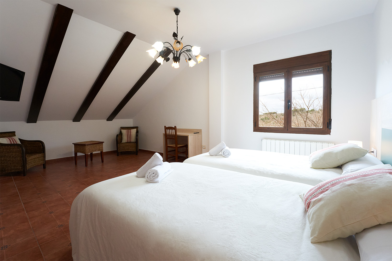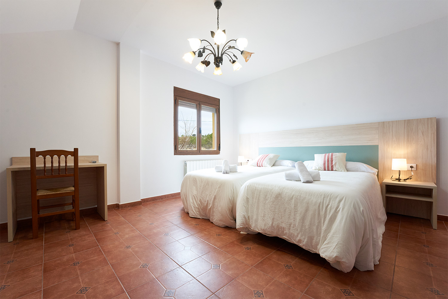 Las habitaciones de la Masia del Cura son amplias y funcionales, con suelo de terracota y muebles de madera. Todas tienen calefacción central, TV y baño privado con artículos de aseo.