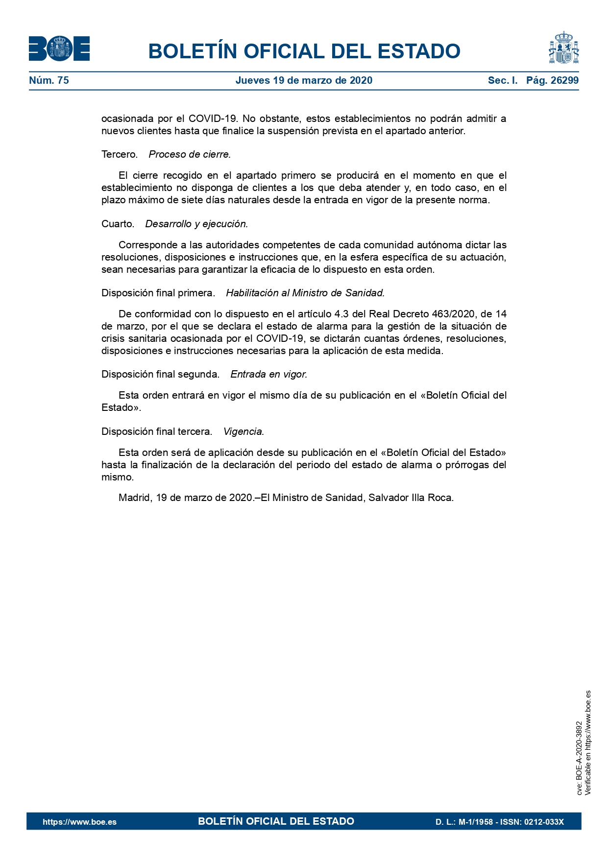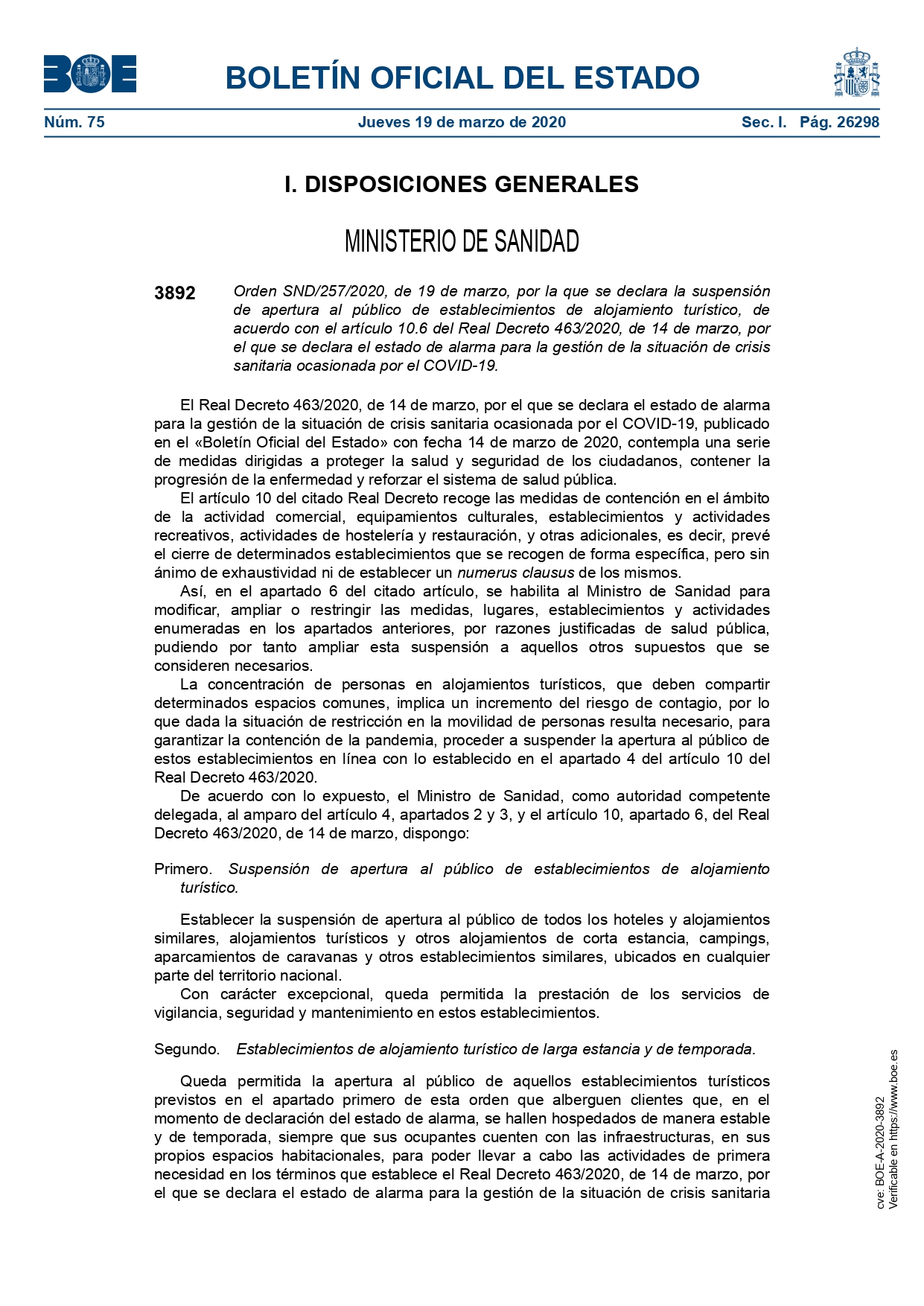 SUSPENSIÓN DE APERTURA AL PÚBLICO DE ESTABLECIMIENTOS DE ALOJAMIENTOS TURÍSTICOS 20 Marzo 2020 Noticias Anterior Siguiente