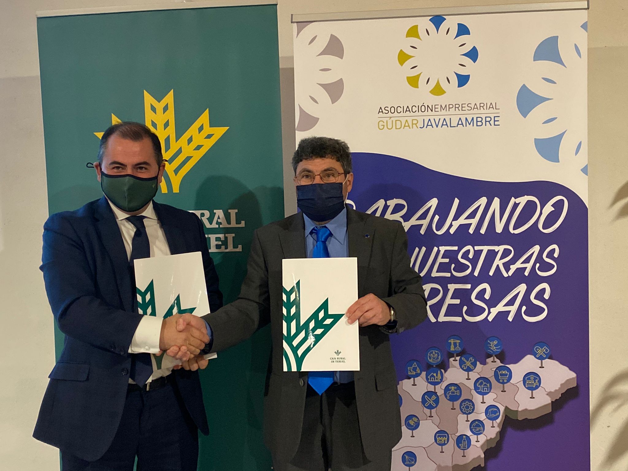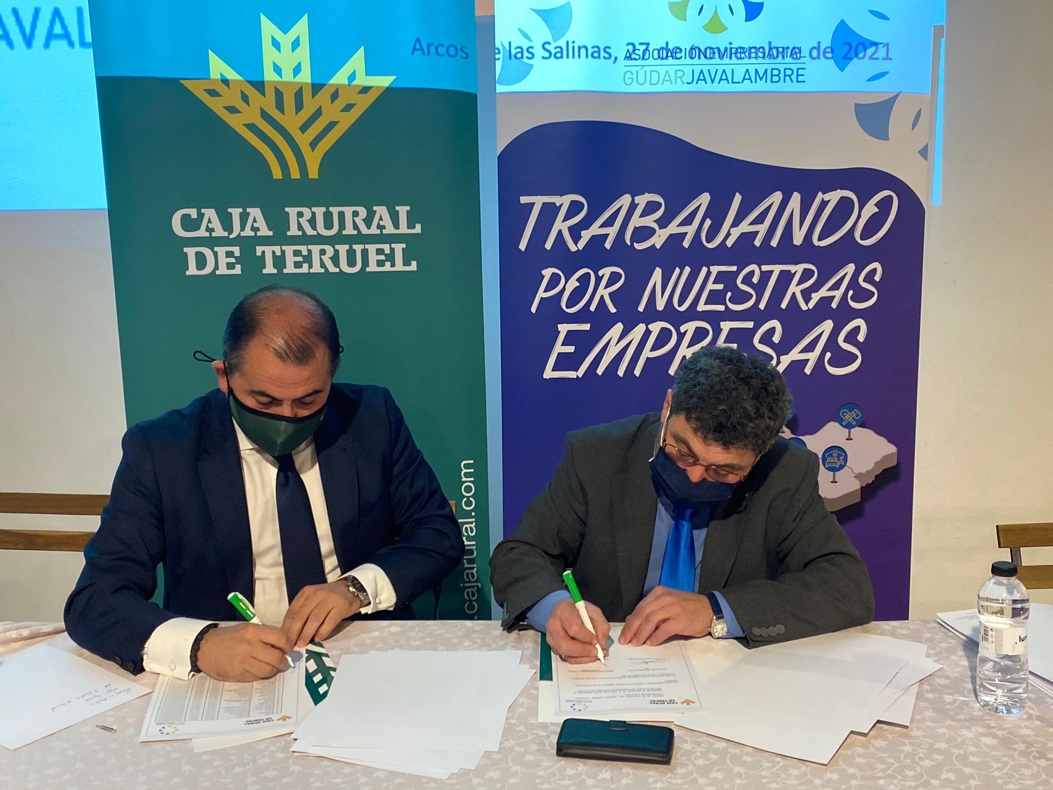 Posteriormente, se renovó el convenio con Caja Rural de Teruel, con la firma de David Gutiérrez, director general de la entidad, y Juan Carlos Escuder, presidente de la Asociación Empresarial Gúdar-Javalambre. Con este convenio de colaboración, los asociados a esta organización pueden acceder a la amplia gama de productos y servicios de la entidad turolense en condiciones preferentes y adaptadas a sus necesidades. El acuerdo incluye también una colaboración económica destinada a la promoción y fomento de la dinamización empresarial de Gúdar-Javalambre.