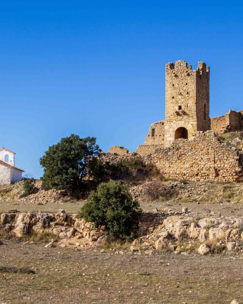 En este punto nos detenemos un buen rato para disfrutar de la Ermita, el Castillo, y el porche, que sirve de zona de descanso para los peregrinos que realizan la romería a la ermita, todos los años, el domingo más cercano al 22 de mayo.