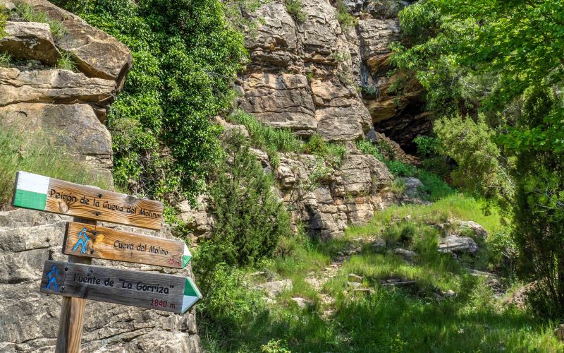 Ruta sencilla, de 3,5 kms de recorrido (ida y vuelta por el mismo camino), que iniciamos en la plaza de la Iglesia de Fuentes de Rubielos y nos lleva hasta la Cueva del Covarcho.