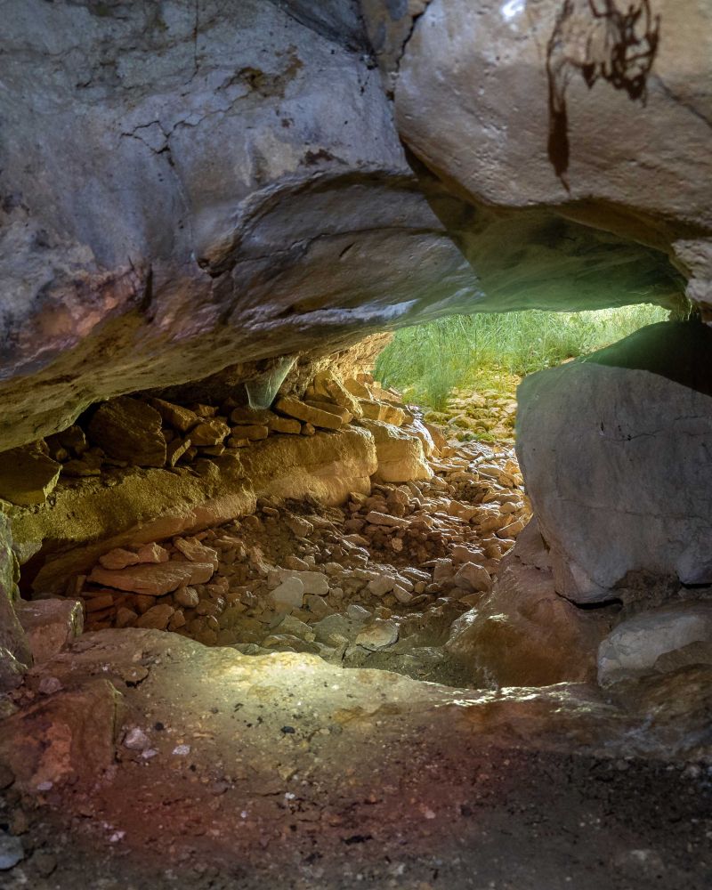 La cueva dispone de una pequeña cavidad por la que se puede acceder al interior (es muy pequeña y hay que entrar casi en posición horizontal por lo que deben extremarse las precauciones, sobre todo con personas con alguna limitación física o claustrofobia).