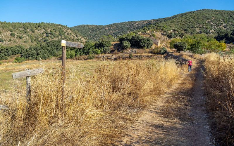 Comenzamos junto a la cisterna medieval, situada a la salida del pueblo hacia Los Cerezos. Nos dirigimos hacia el barrando del Medio, por el que iniciamos la subida por un camino que se abrió durante la Guerra Civil. Los primeros 3,5 kilómetros son en constante subida aunque se pueden hacer sin problemas ya que discurrimos por terreno cómodo.
