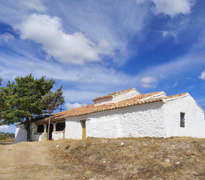 La ermita, construida en el siglo XIII, en piedra de cuarzo blanco, está situada en un entorno precioso donde paramos a reponer fuerzas, antes de emprender el camino de regreso a Abejuela.