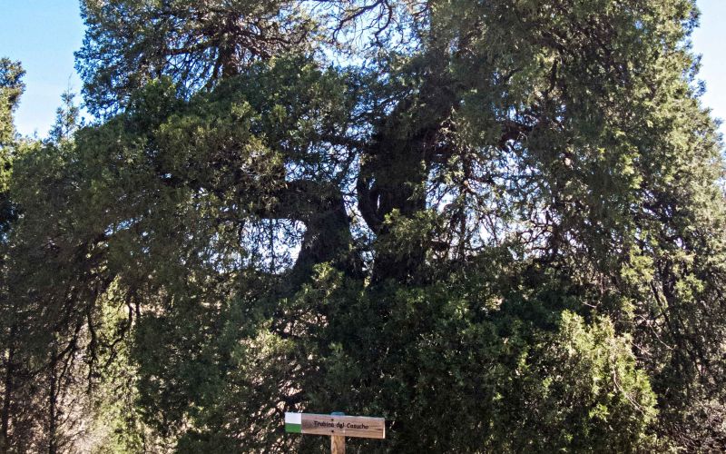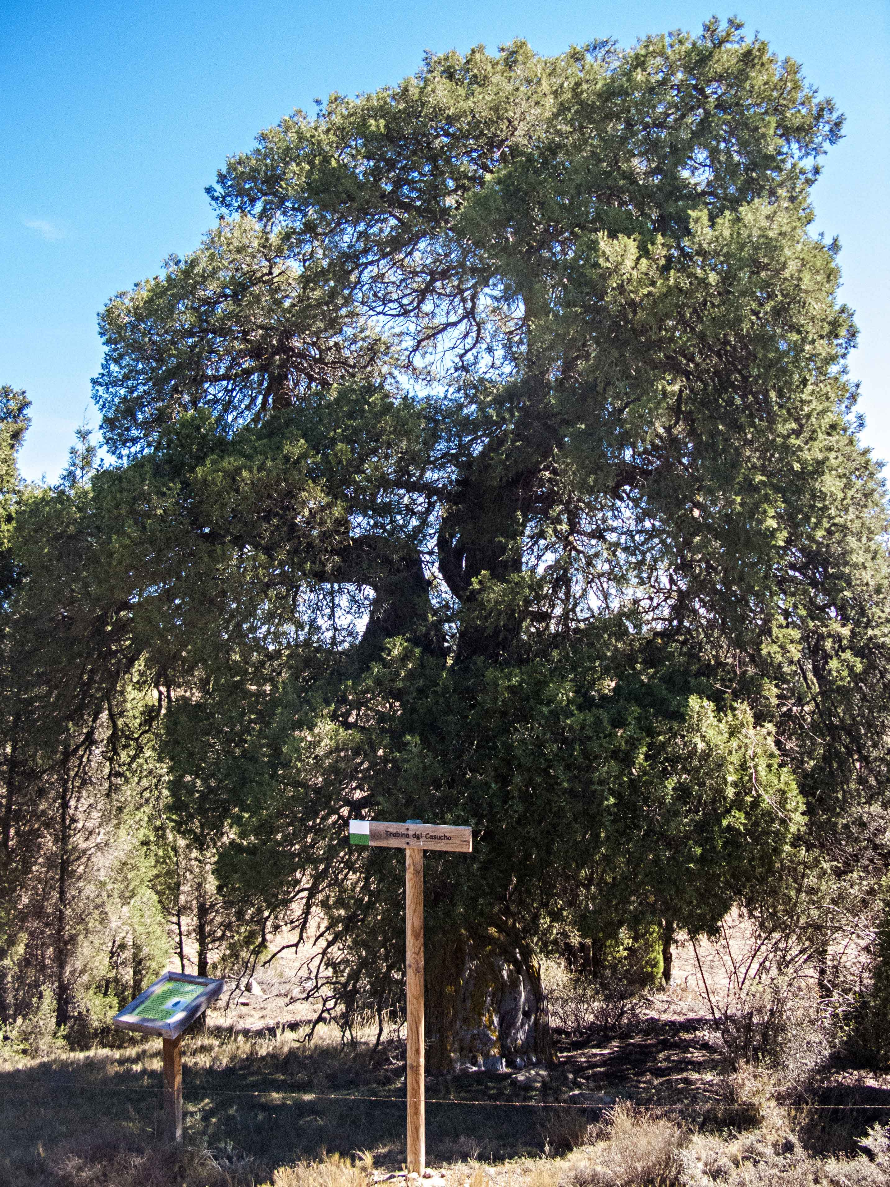 En el collado comenzamos a caminar siguiendo la pista dirección al mirador. Al poco de tomar un desvío a la izquierda, pasamos junto a la Sabina Albar, ejemplar de más de 200 años y una altura entorno a los 9 metros.