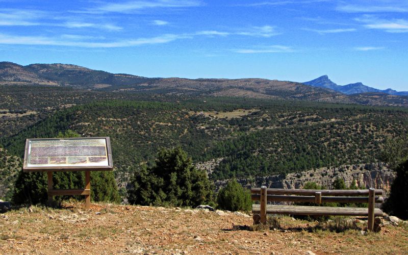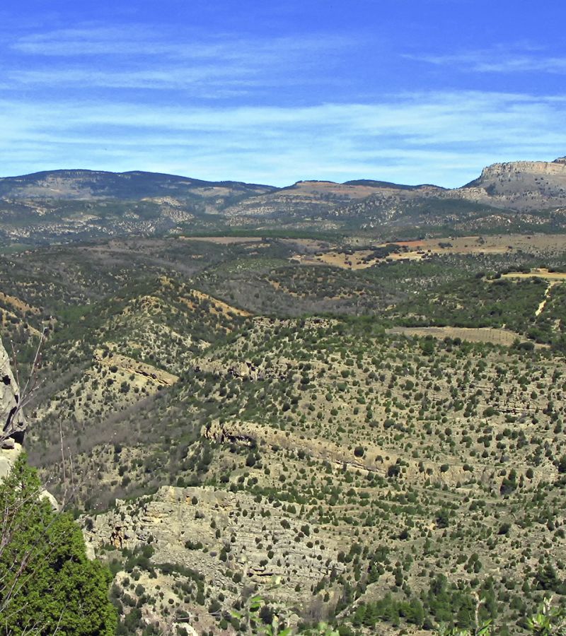 Ruta sencilla, de poco más de 5 kilómetros y escaso desnivel, que nos lleva desde el Collado de los Santos (inicio tramo a pie), hasta el mirador de las Canteras del Salto, desde donde se observan unas vistas panorámicas sobre el curso del río Morrón, la Sierra de Gúdar y la provincia de Castellón (justo enfrente del mirador veremos la parte superior del Peñagolosa).