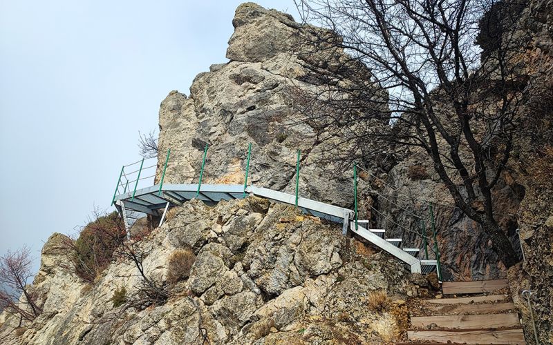 Se toma el sendero entre dos viviendas en la Calle San Mateo, entrado así en el pie de la ladera del Cerro de San Cristóbal. En estos primeros metros se salva el desnivel mediante una escalera de mampostería. Desde esta zona se asciende realizando un pronunciado zigzag, llegando hasta la zona superior del cerro.