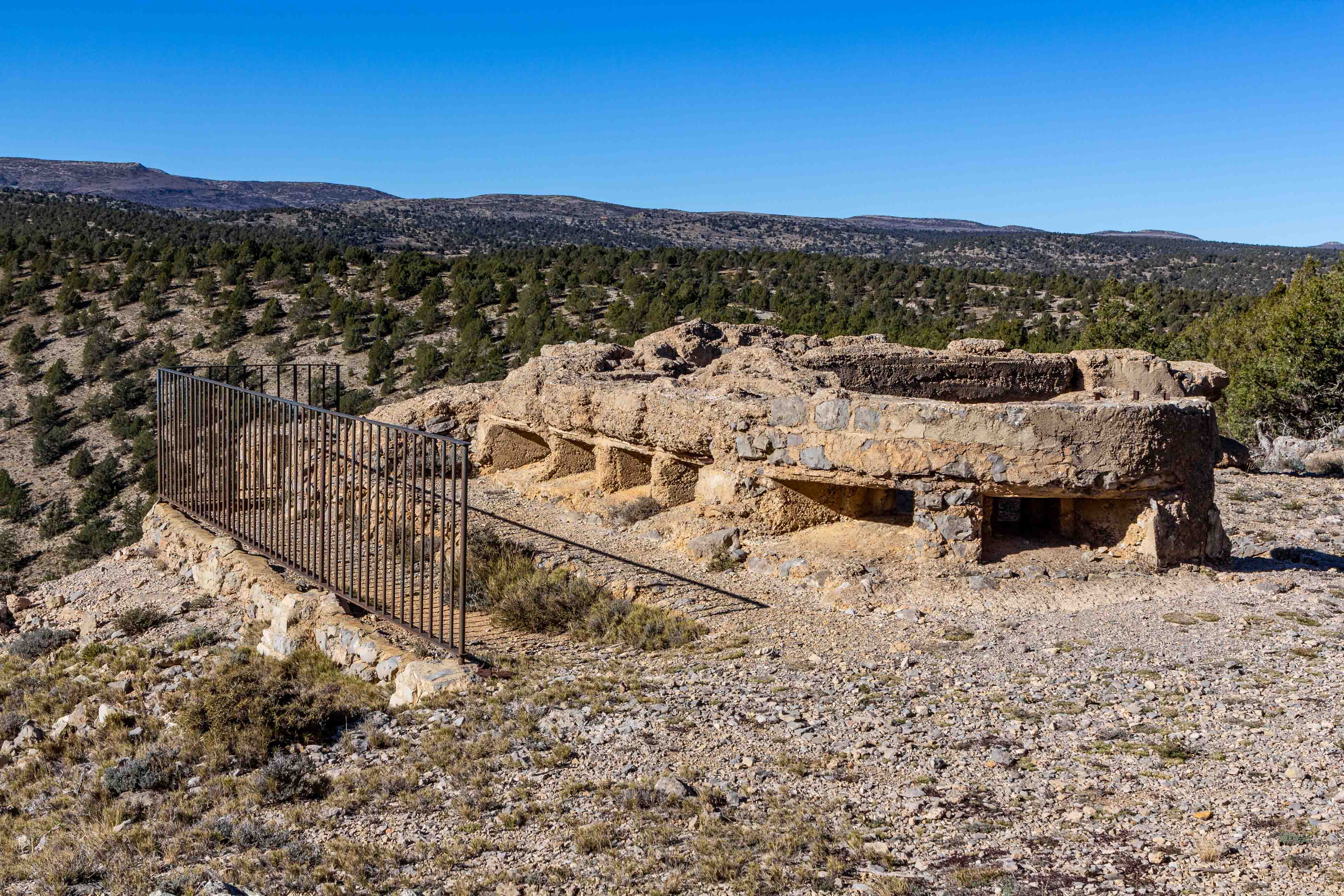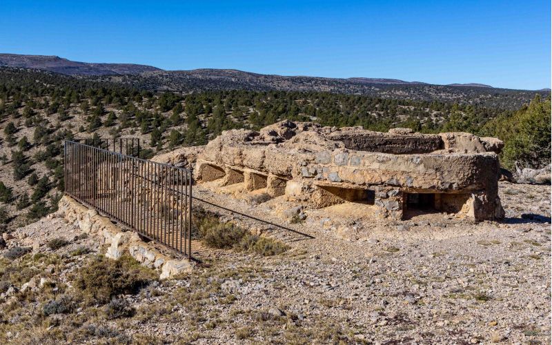 Durante la subida podremos disfrutar de unas vistas privilegiadas de la sierra de Gúdar. Desde el nido de ametralladoras se divisan perfectamente los puntos más elevados de la sierra de Javalambre.