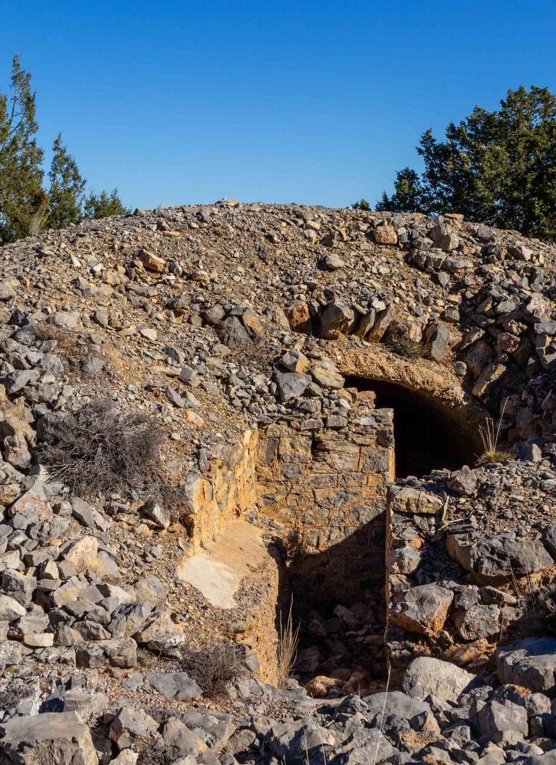 Para llegar al punto de inicio de la ruta, nos desplazamos por una pista asfaltada, con firme irregular, durante unos 11 kilómetros (ver tracks). Partimos de las inmediaciones del Centro de Interpretación de la Guerra Civil (recomendamos su visita como complemento a la ruta), junto a la ermita de la Sangre de Cristo y salimos del pueblo, dirección suroeste, por el paso superior de la vía del tren y cruzando la Vía Verde de Ojos Negros. Seguiremos la pista hasta llegar a una pequeña laguna, donde termina el tramo asfaltado y dejaremos el vehículo para comenzar el tramo a pie.