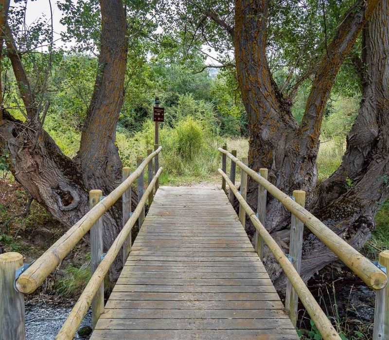 Durante el paseo por la senda fluvial podremos disfrutar del relajante sonido del agua a su paso y la vegetación del bosque de ribera, entre chopos, olmos, azeres y sargas.
